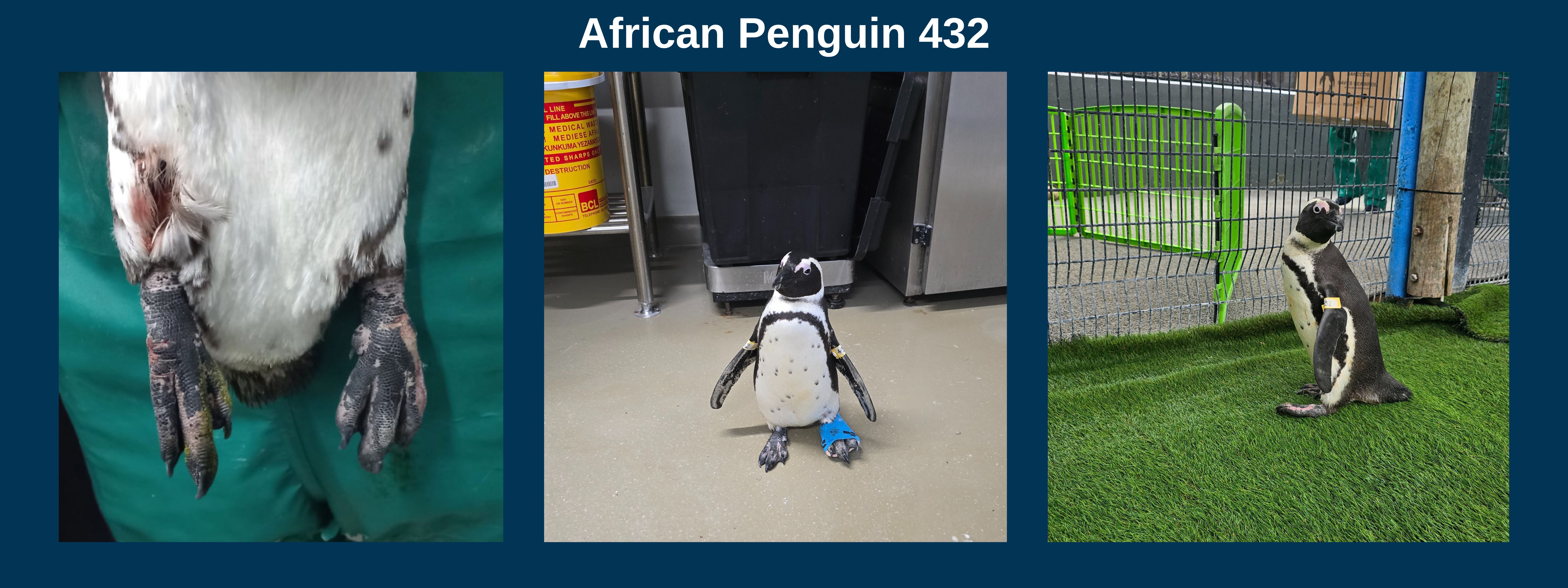 AP432's Road to Recovery: From a Flipping Foot to Steady StepsAfrican Penguin number 432 (AP432) was rescued from Foxy Beach (Simon's Town) at the end of July after being found unable to stand, with injuries to both feet and a deep cut on the right leg. The wound on the leg was cleaned and stapled closed, while the foot injuries required more intensive care. Complicated by bone infections, the feet were treated with antibiotic infusions and ongoing wound care.Walking was especially challenging at first, as the left foot would flip back. With time, treatment, and the support of a specially designed bootie, AP432 has gradually regained normal movement. The penguin is now going through the rehabilitation process, and every day is a day closer to being released.